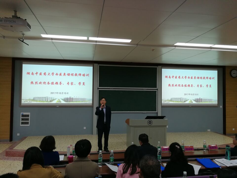 10月15日,由教务处、教师教学发展中心、医学院联合举办的“西医类课程教师培训”在3号教学楼3117教室举行,大学副校长何清湖及教务处、教师教学发展中心、医学院主要负责人参加开班仪式,来自附属宁乡人民医院、附属第二人民医院、中医药研究院附属医院、长沙市口腔医院、第一、第二附属医院、医学院、中医学院的西医类课程教师340余人参加培训。开班仪式由医学院党委书记文红艳主持。