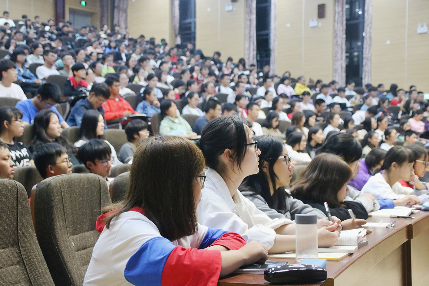 9月27日晚上,湖南中医药大学2018级新生入学教育系列“书记第一课”讲座于含浦校区第三教学楼一楼报告厅顺利开展。此次讲座以“不负时代,追逐梦想”为题,校党委书记秦裕辉为主讲人。医学院全体2018级新生辅导员老师和全体2018级新生参加了此次讲座。